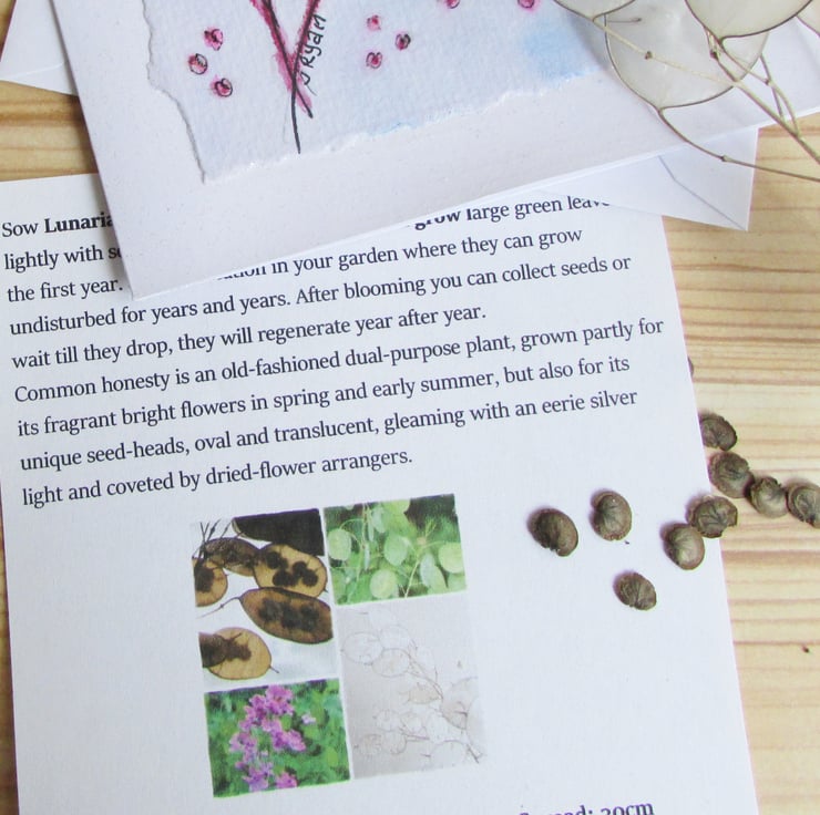 It has the added addition of a packet of Honesty Seeds from my own plants to plant in the garden or scatter in the hedgerows.
