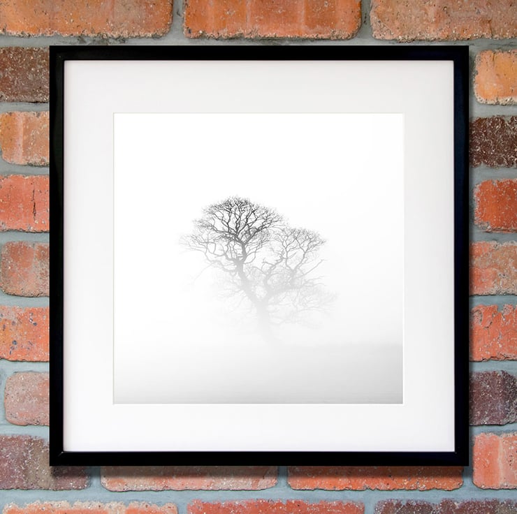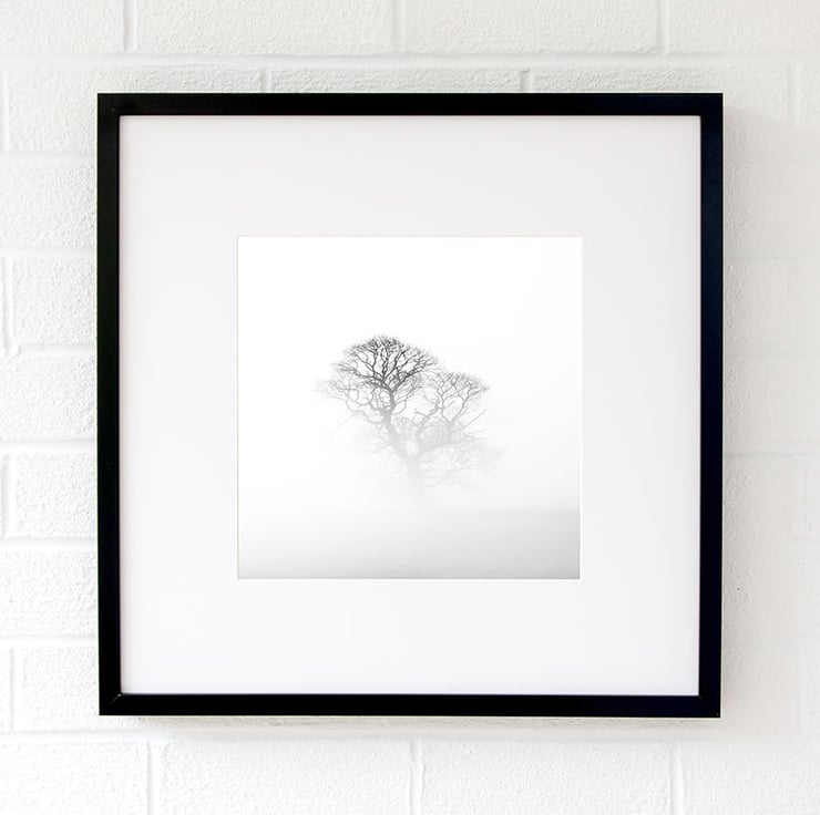 Looking for minimalist wall art? Our original fine art photography captures an ethereal lone tree emerging from the mist. This minimalist black and white tree wall art print comes beautifully packaged and is archival quality.
