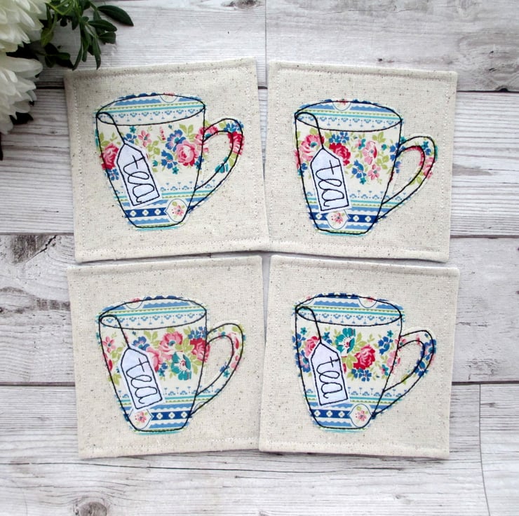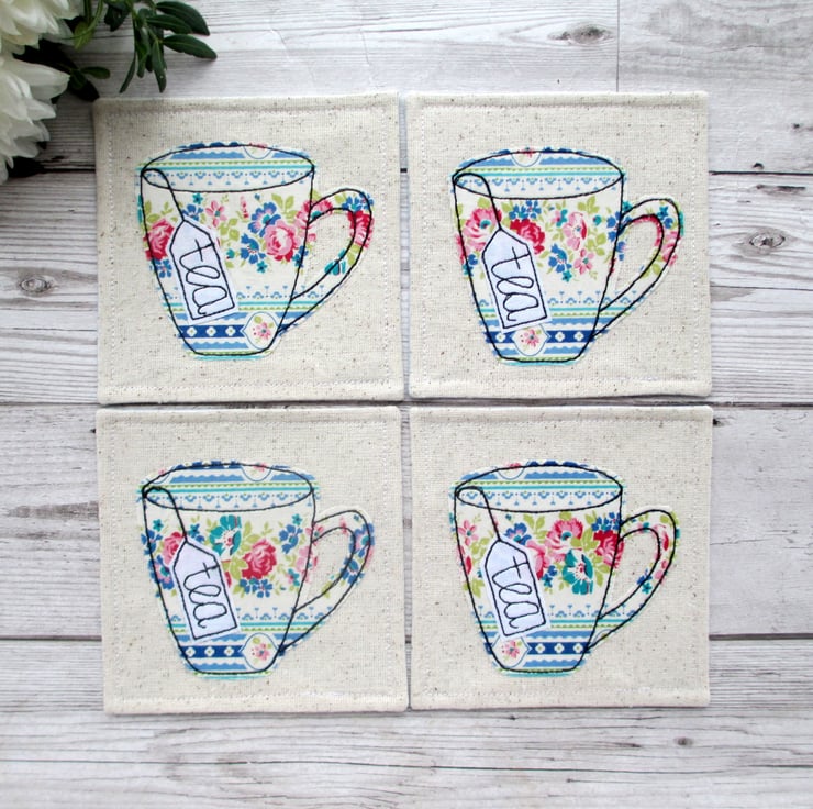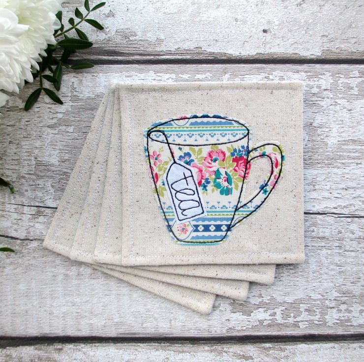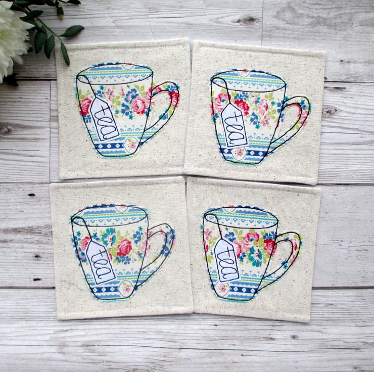 Our coasters are made using free motion machine embroidery which allows us to draw freehand with the needle and thread of the sewing machine, meaning no two coasters are exactly the same!