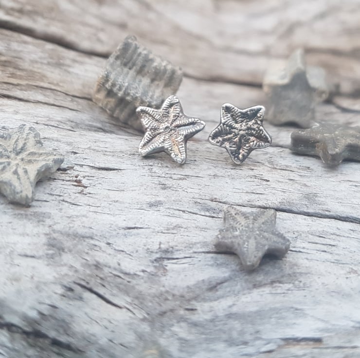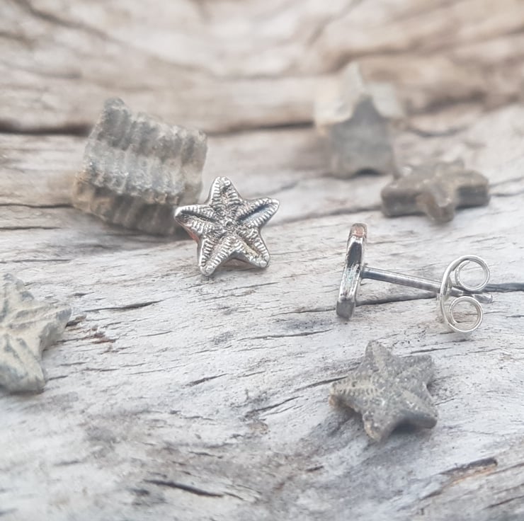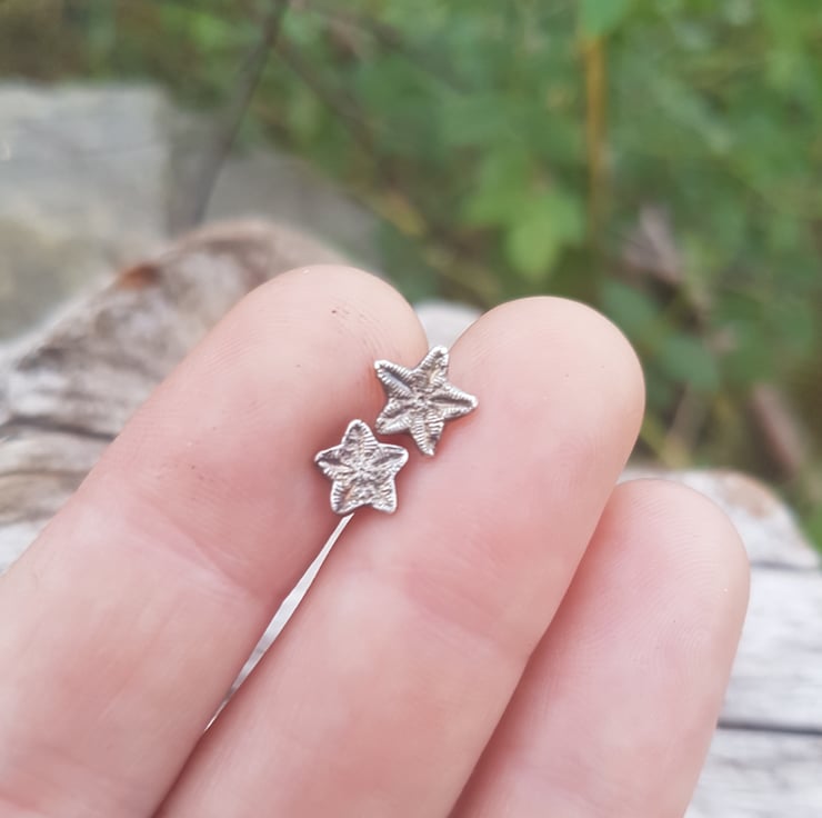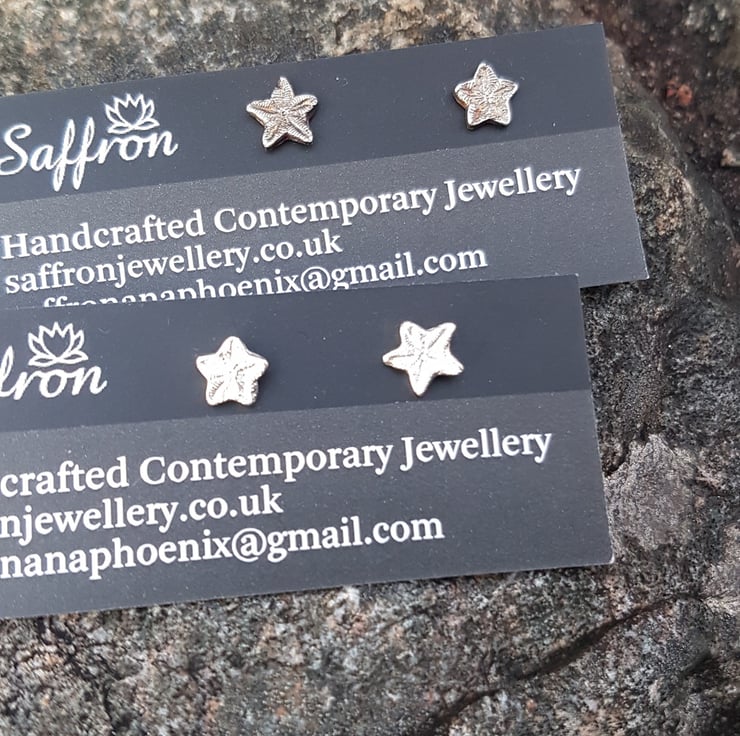 These lovely studs are made from fine silver stars with sterling silver posts and scrolls,