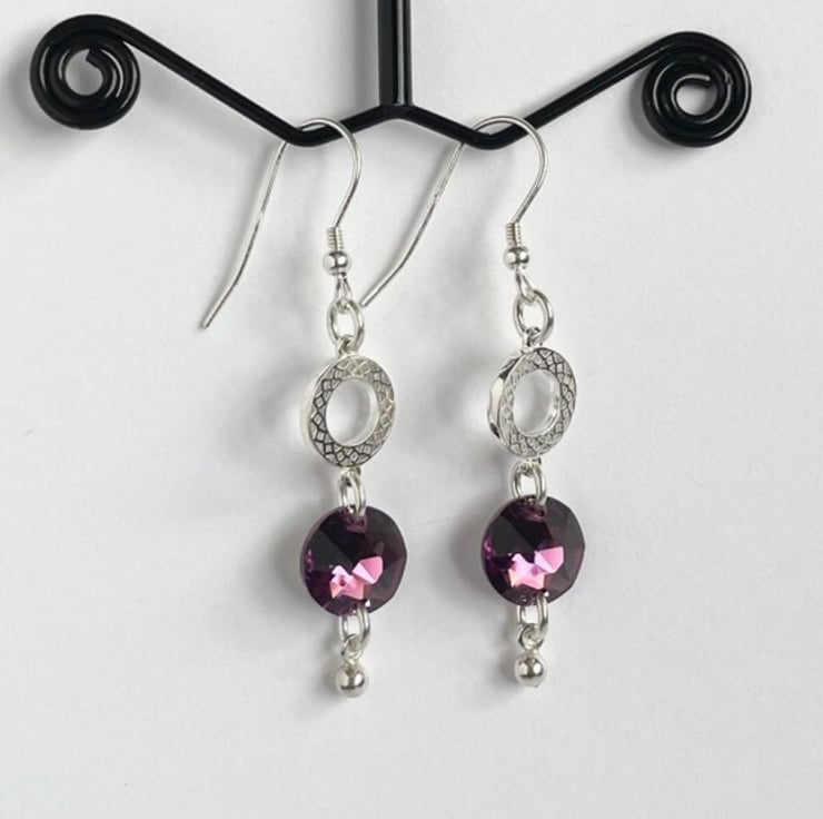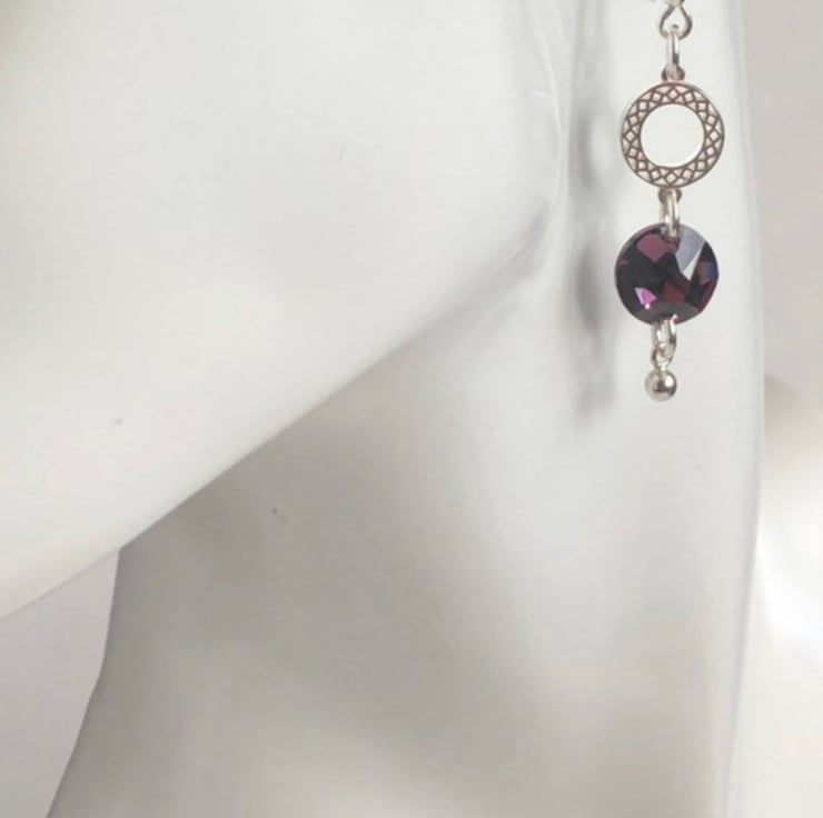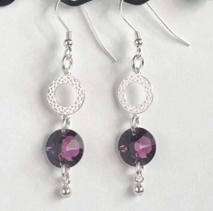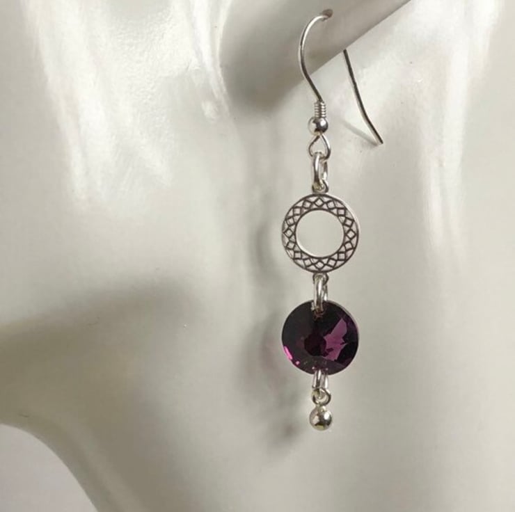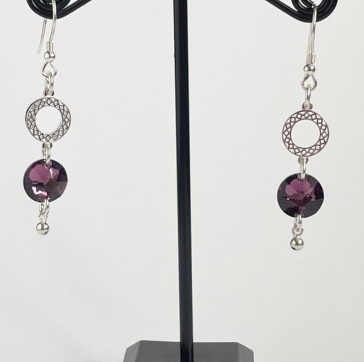 A lovely circular carved ring has been teamed with a faceted purple Crystal.