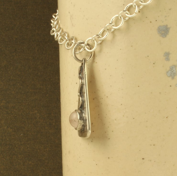 Designer Silver Pendant Necklace - Pink Quartz on Textured Silver