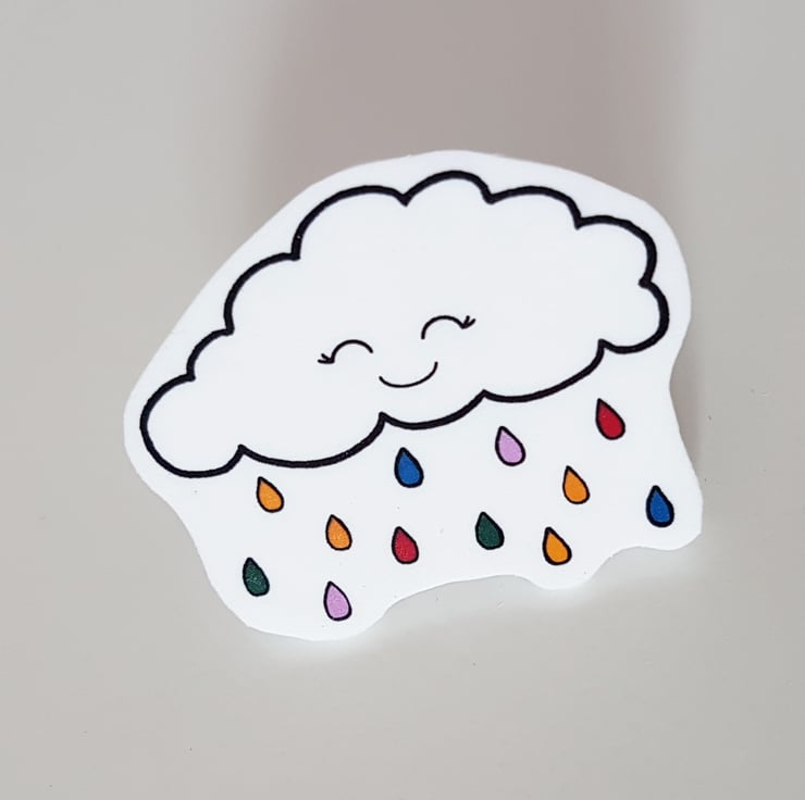 Such a cute colourful piece - a kawaii style smiley cloud with a shower of rainbow coloured raindrops!