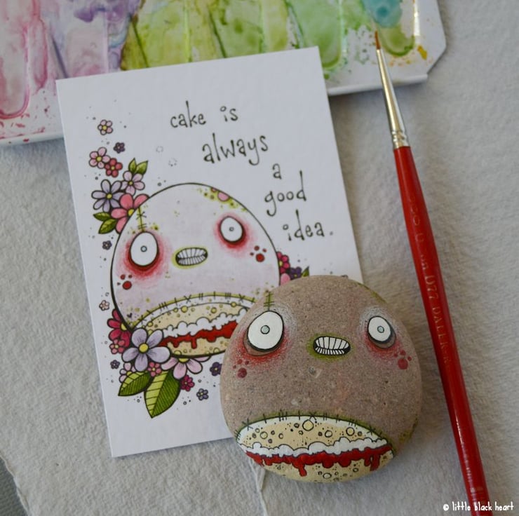 this is victor. he is a big fat rocky victoria sponge themed zombie rock, and he thinks cake is always a good idea. i am not going to argue with him.