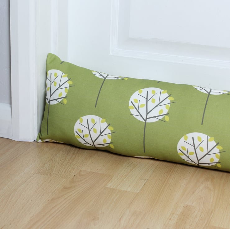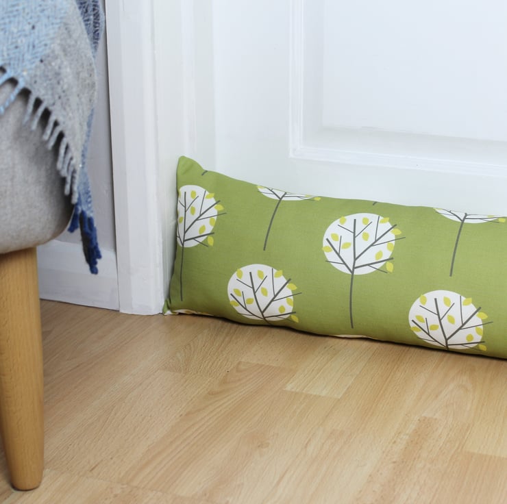 A Scandi style draught excluder in my popular Moonlight Tree fabric in Olive Green.