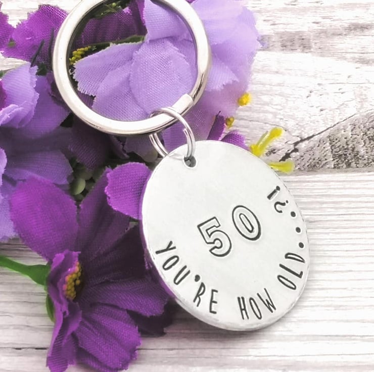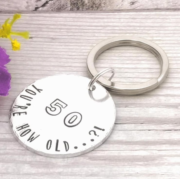 You're how old...?! Subtly remind someone they're getting on a bit with this funny 50th birthday keyring.