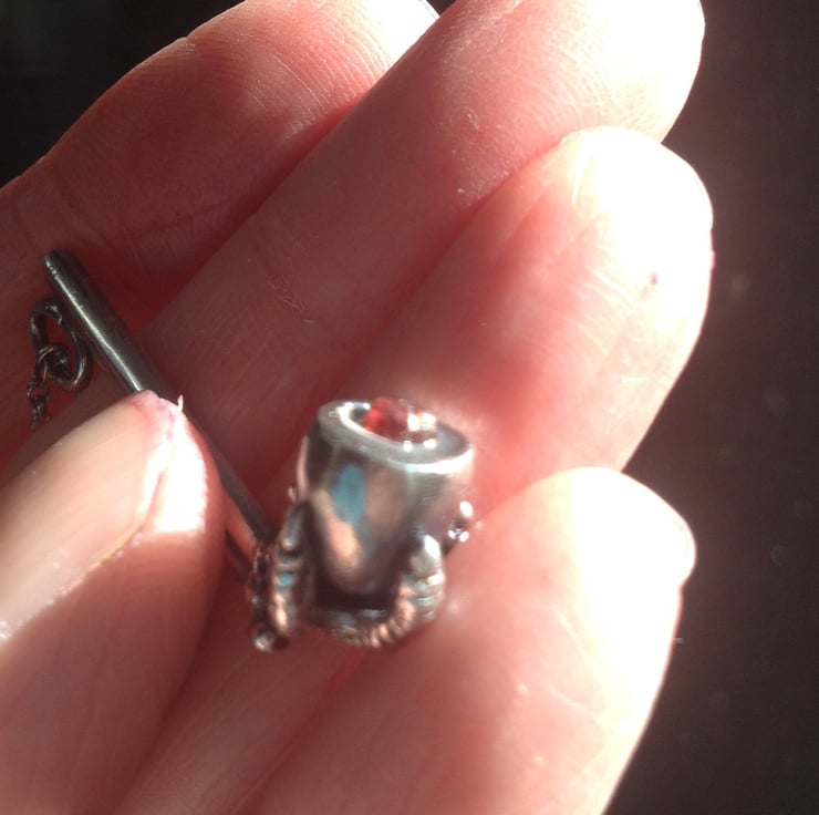 Nicola White (Tideline Art on YouTube) found a beautiful egg and claw pipe recently which she showed on her YouTube channel and now I have created one in silver with a Thames garnet.