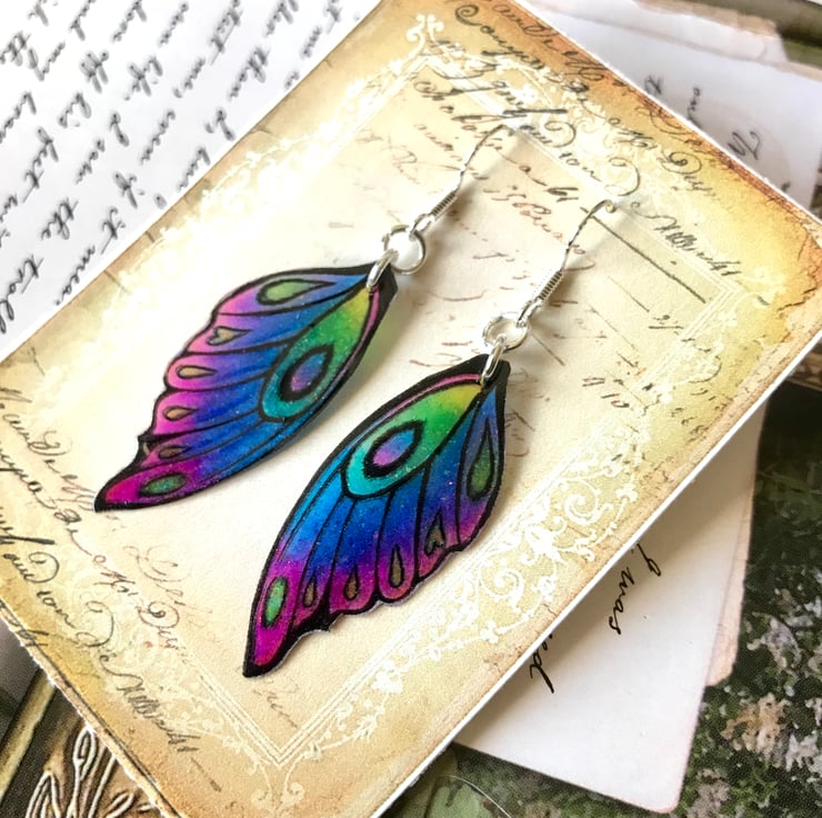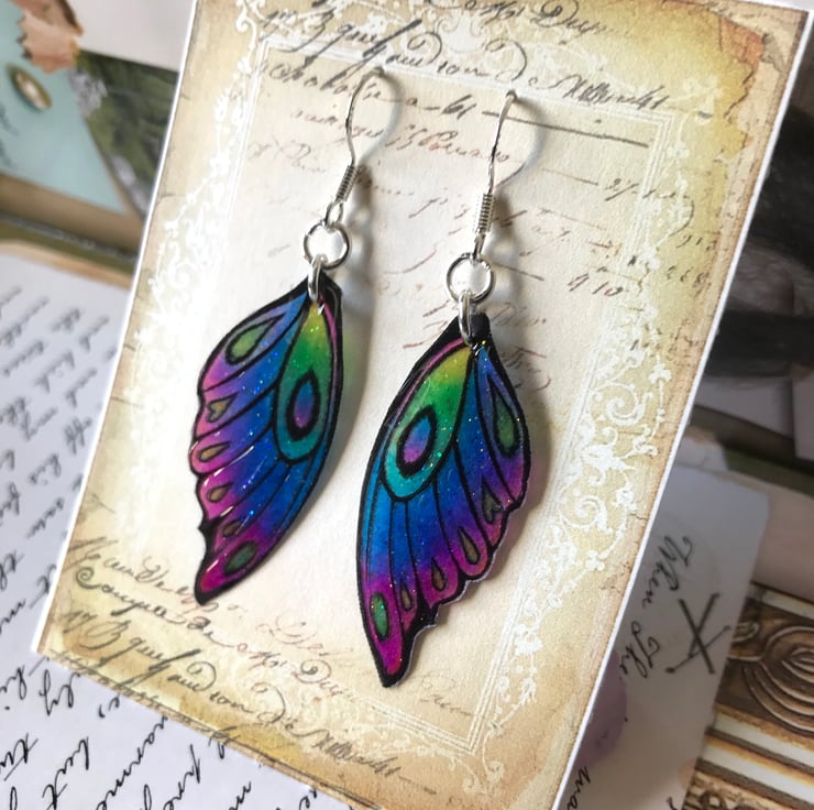 The earrings measure 60mm from the top of the sterling silver hook to the tip of the wing.