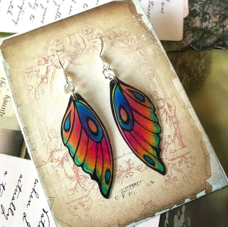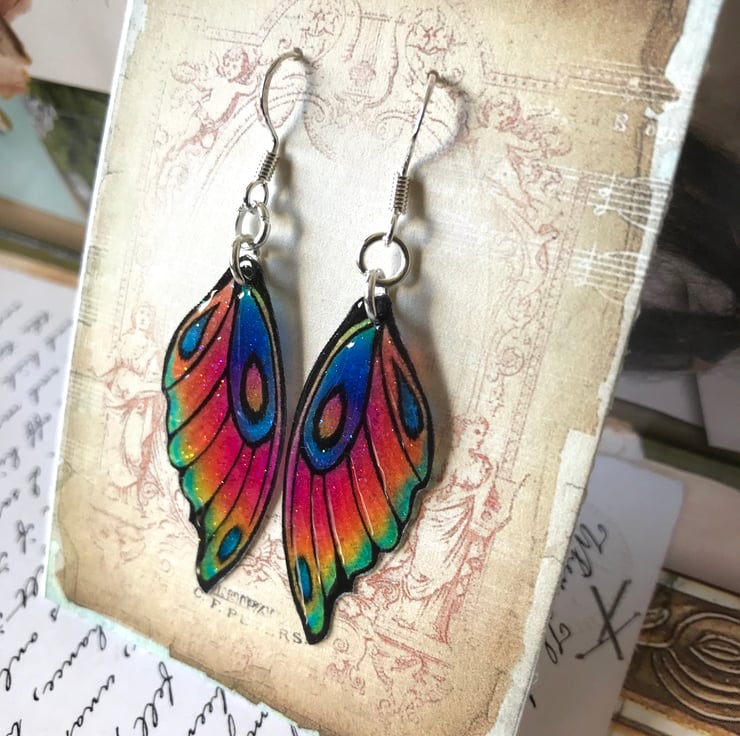 The earrings measure 60mm from the top of the sterling silver hook to the tip of the wing.