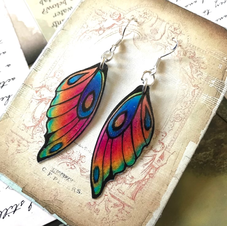These brightly coloured fairy wings are so pretty and sparkle in the light because of the tiny pieces of iridescent glitter that have been sealed beneath the shiny surface of the wings.