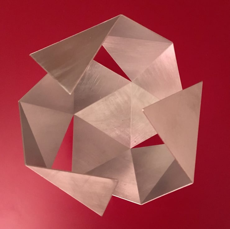This particular object was inspired by an Icosahedron, one of the five Platonic Solids that were discovered by the early Pythagoreans, circa 450BC.