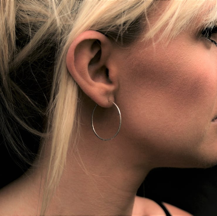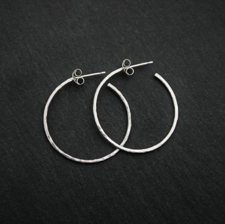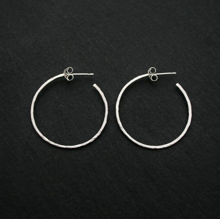 These lovely hammered silver hoop earrings have been made using 1.2mm sterling silver wire and ear pins. The opening at the back makes them easy to put on and comfortable enough to wear every day!