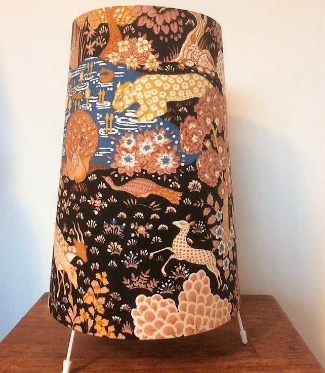 Also shown is a small cone shade made up as a LAMP - details on THIS listing https://folksy.com/items/7312979-Retro-Vintage-Fabric-Lamp- .