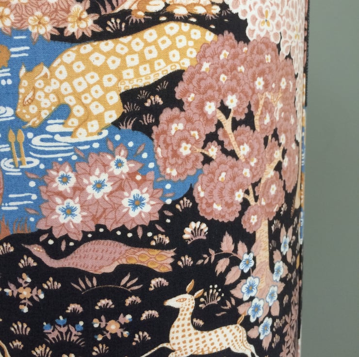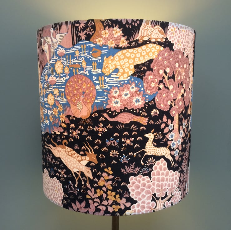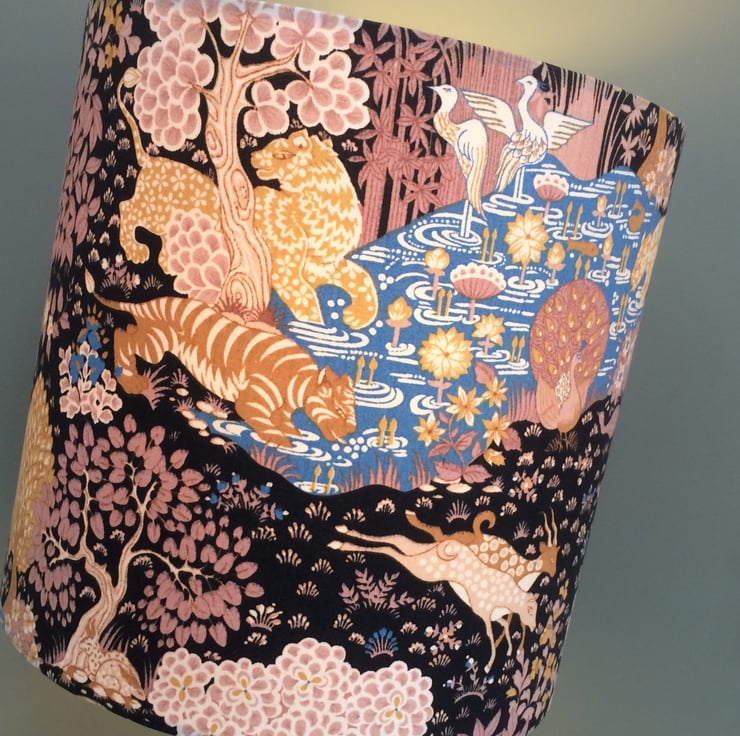 Dramatic Black Animal Kingdom ( using Sanderson VIntage fabric) Lampshade Option. RARE and hard to find fabric. Amazing change with light behind it.
