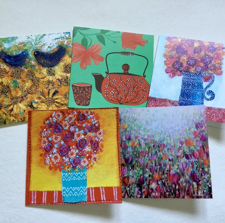 This cards have been made from my original watercolour paintings. The cards measure 12x12 cm and come with an envelopes. Each pack contains 5 blank cards, making them suitable for a variety of occasions.