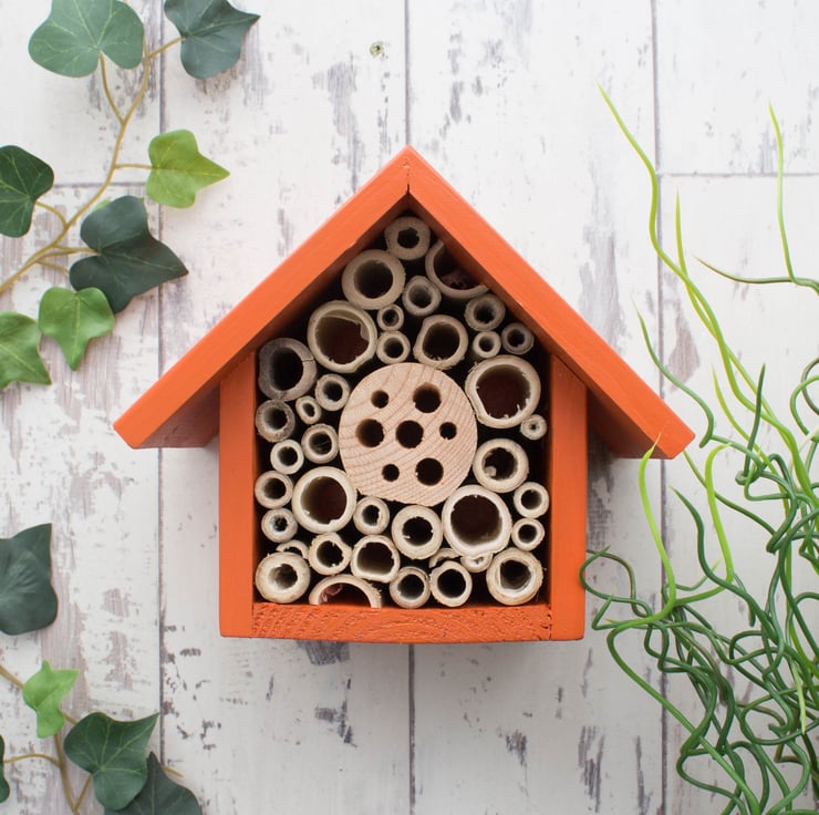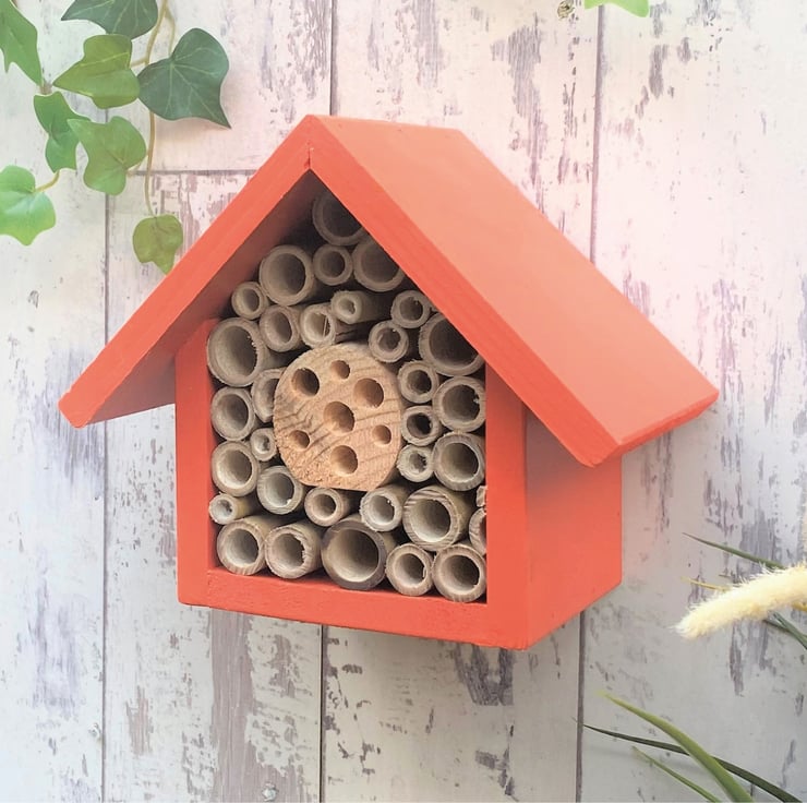 It is designed primarily to be used by solitary bees such as Mason Bees or Leafcutter Bees, which are non aggressive and excellent for pollinating in the garden, helping to increase fruit yields.