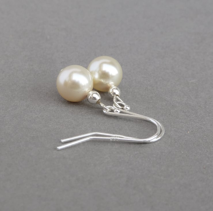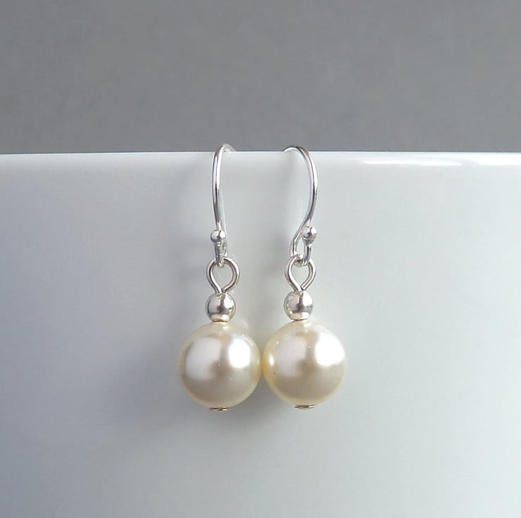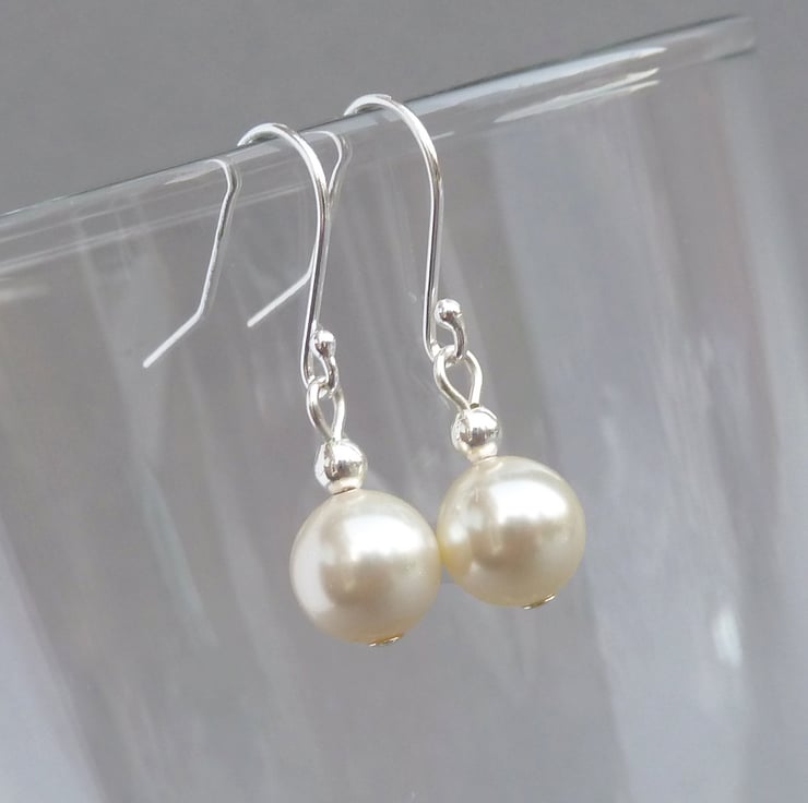 8mm cream glass pearls have been used to create these simple pearl drop earrings. These dangly ivory pearl earrings are ideal for finishing off an outfit and make great gifts.