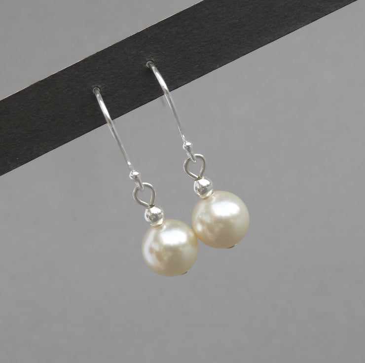 Simple Cream Pearl Earrings - Ivory Dangly Drop Earring - Wedding Jewellery Gift