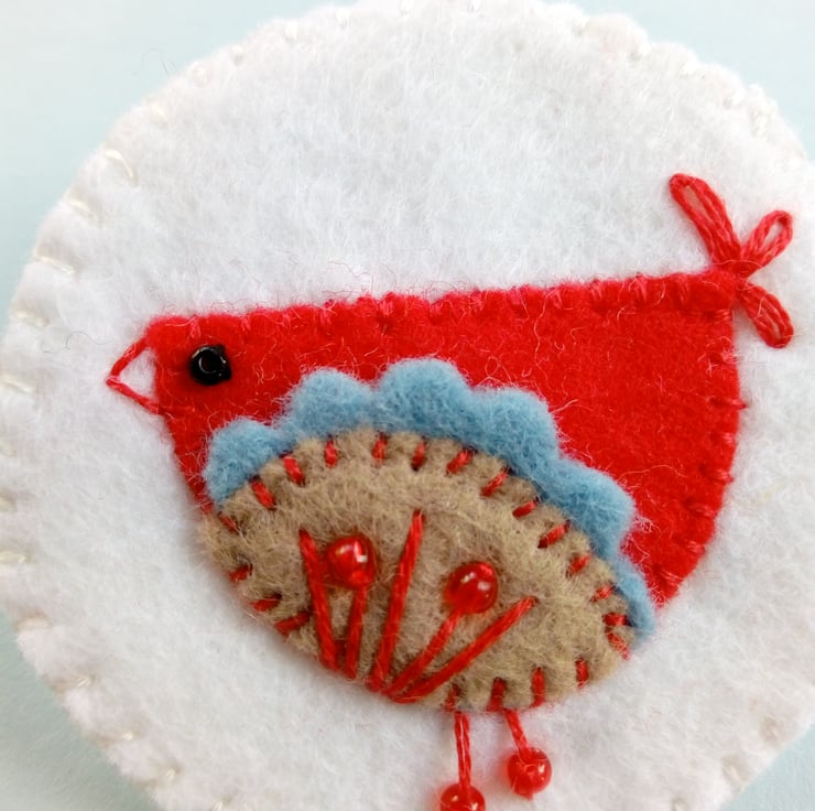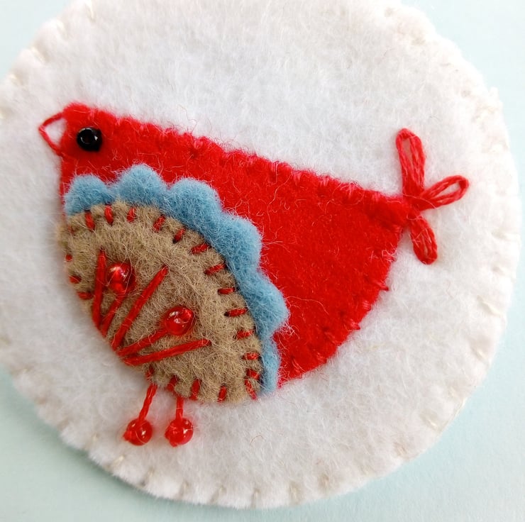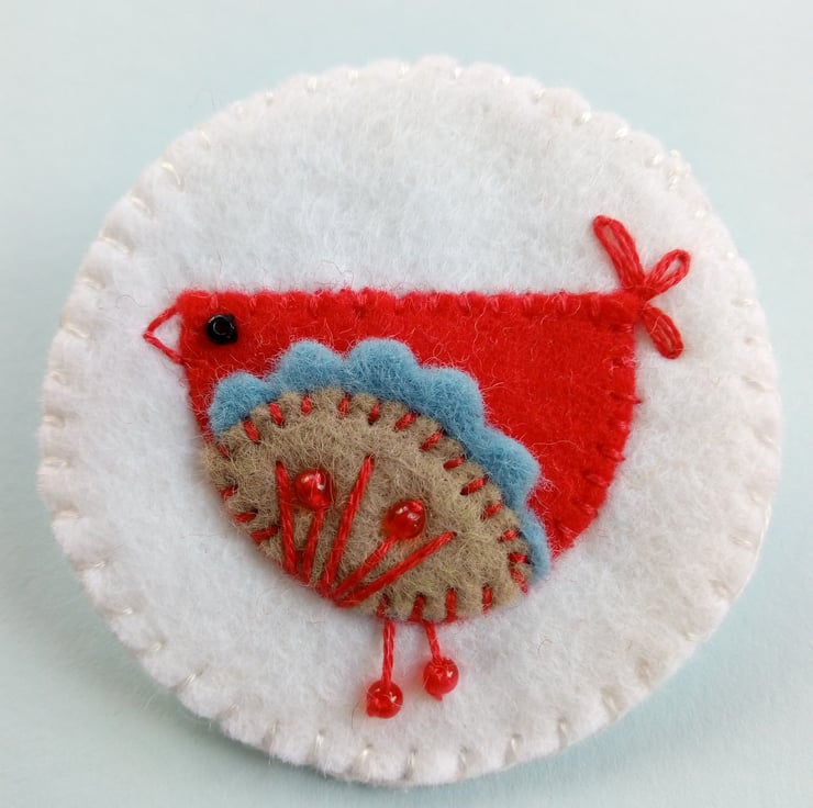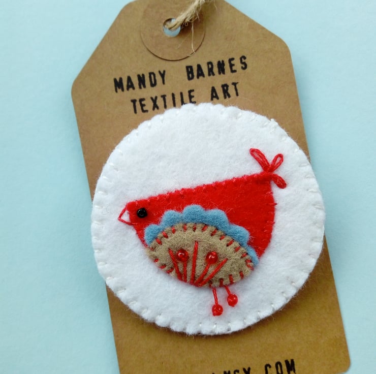 This fun, felt brooch has been designed and handmade by myself and features a cute little bird.