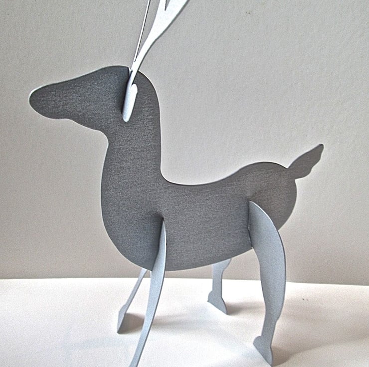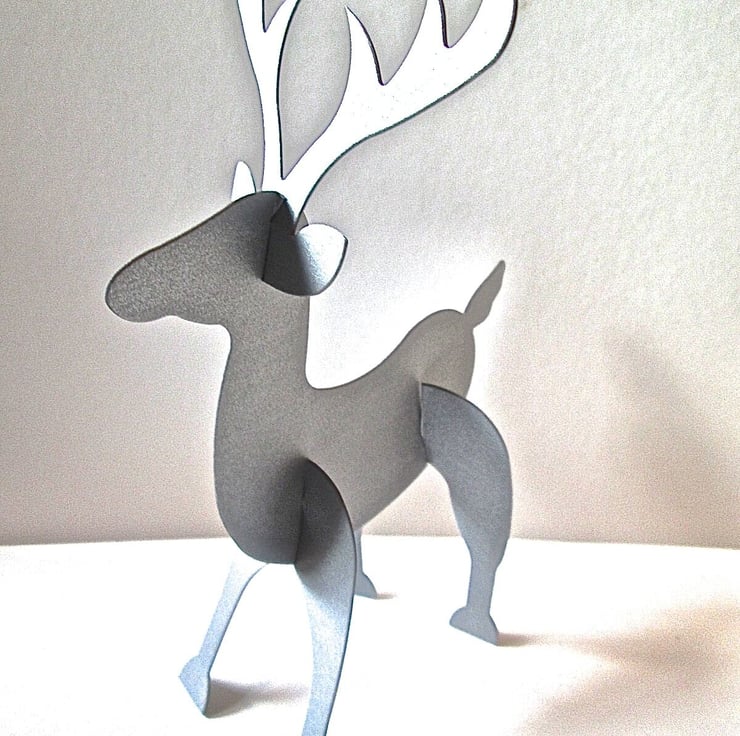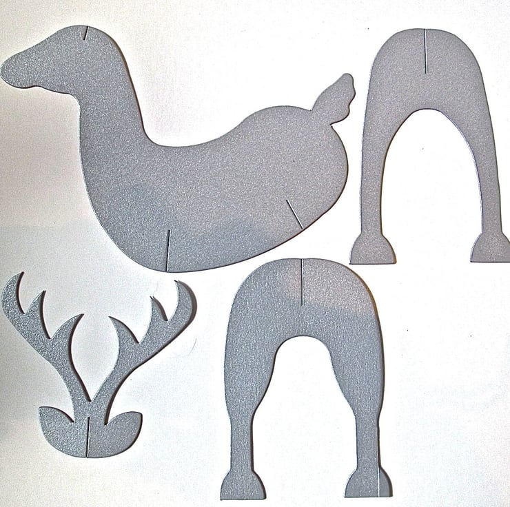 The legs fit into the pre-cut slots on the body and the antlers fit into the pre-cut slot on the head.
