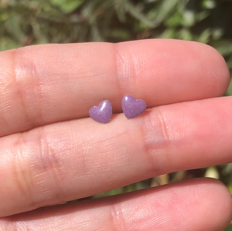 Cute 5mm sterling silver stud earrings have been hand enameled using the cold enamel technique.