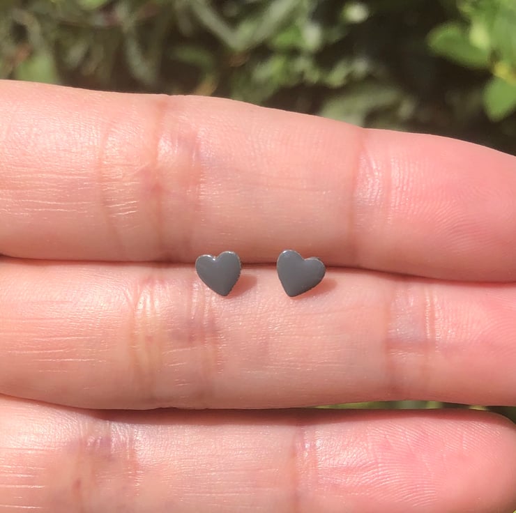 Cute 5mm sterling silver stud earrings have been hand enameled using the cold enamel technique.