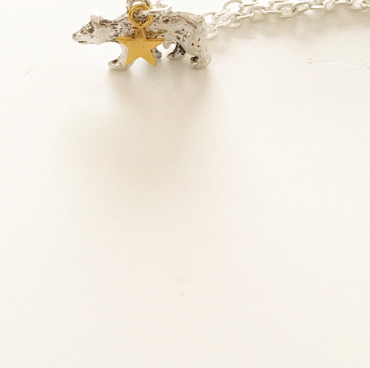 Both the bear and the Star sit on a 18 inch silver plated necklace.