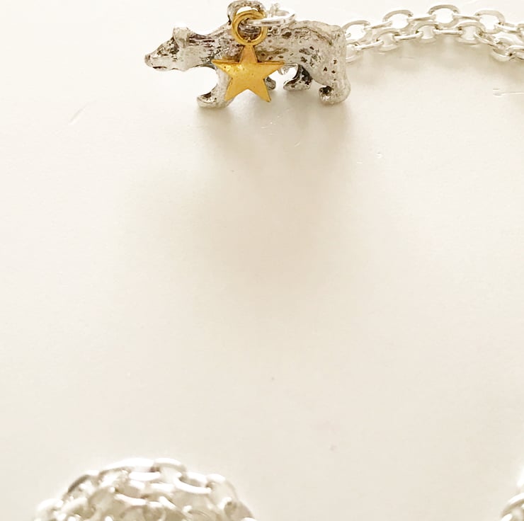 I have teamed up a silver tone polar bear with a gold star which represents the North Star.