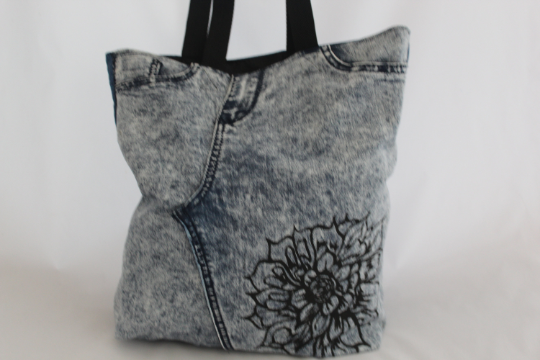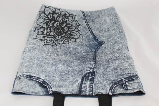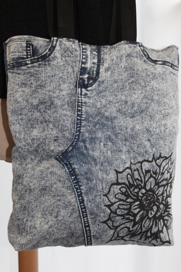 This bag is printed with a black floral pattern, which has been screen printed onto the fabric from my own unique design.