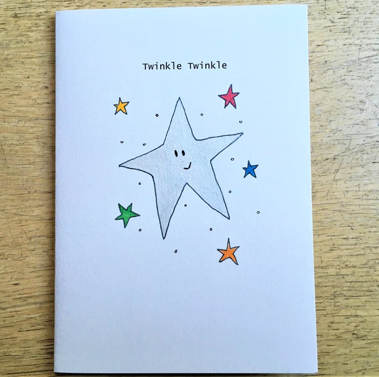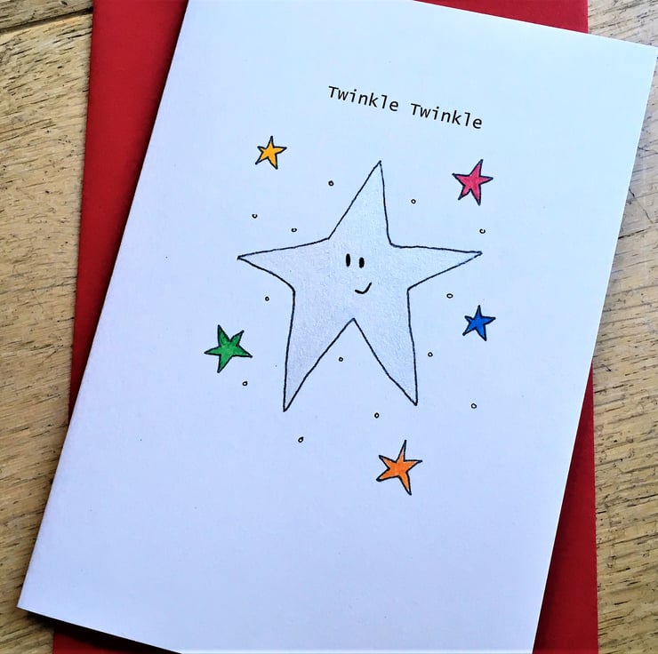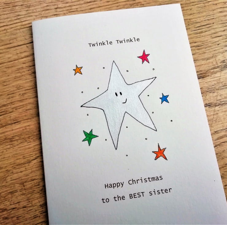 My Twinkle Twinkle Sliver Star Christmas Card is hand-painted with festive, shimmery silver paint onto recycled card. I love this cheeky star design and it is an eco-friendly greeting which can also be personalised with your own message. This listing is for a single cards. Please see my other listing for packs of 5.