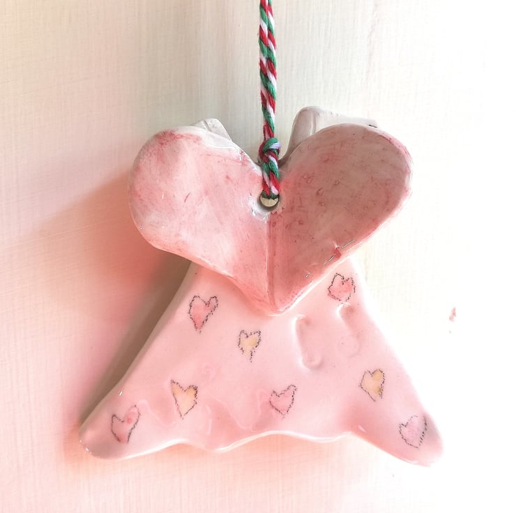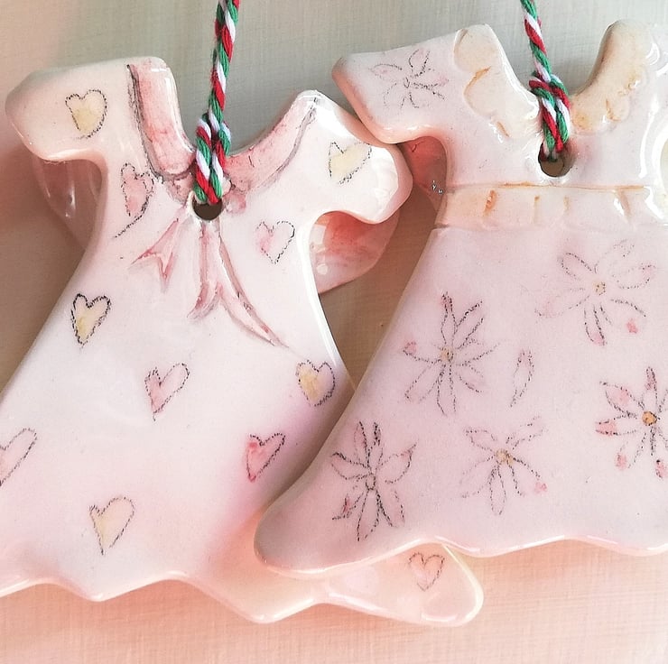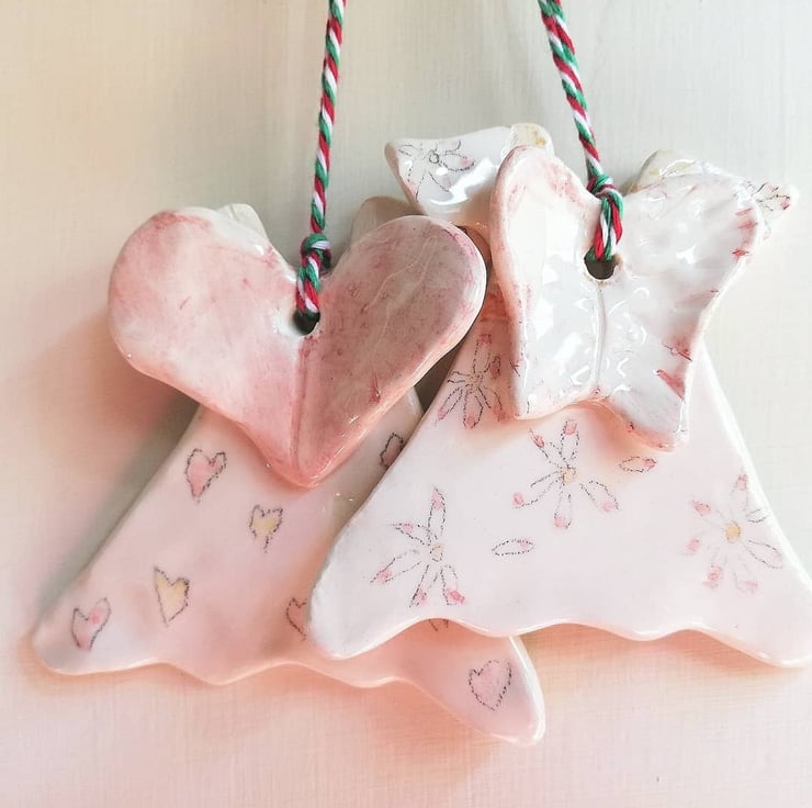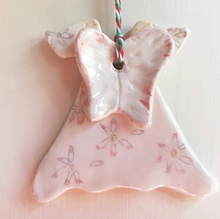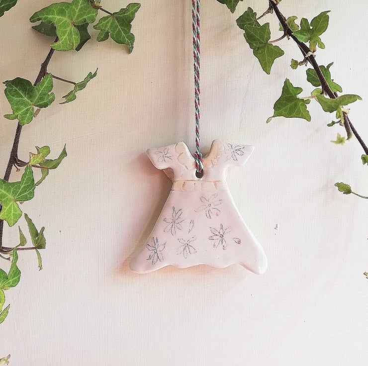 Handmade pottery angel or fairy dress with wings hanging decoration. Only daisy dress available.