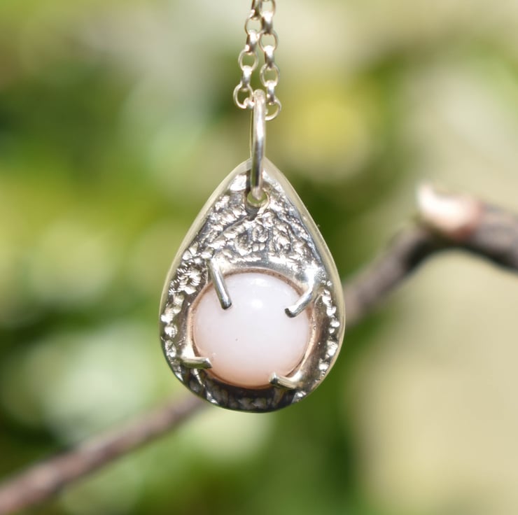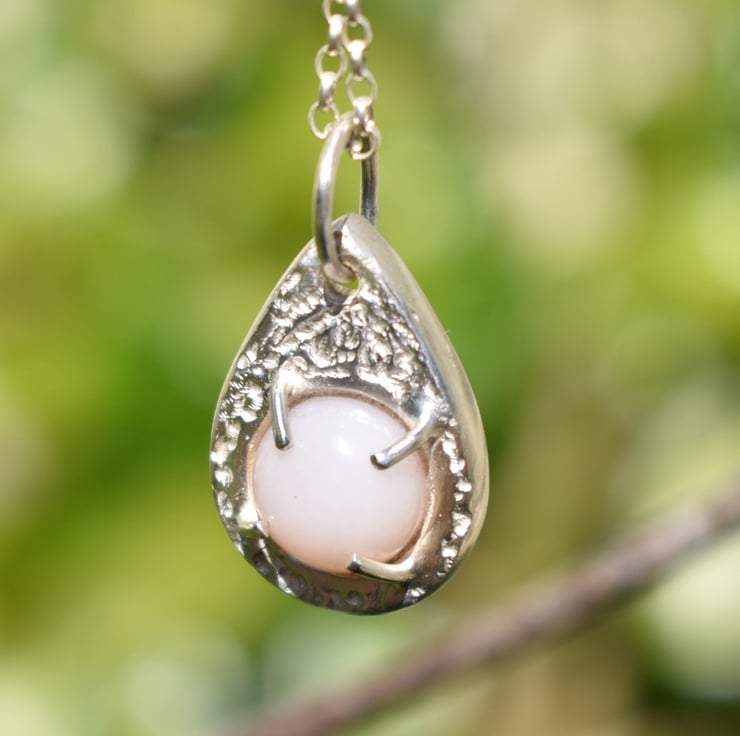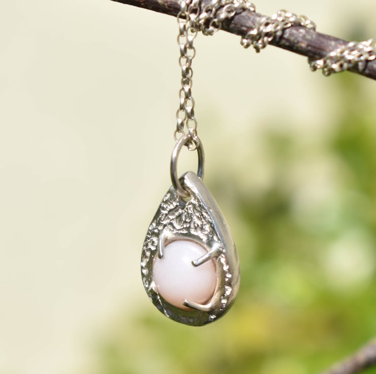 Designed and handcrafted by me in my studio. One of a kind sterling silver pendant set with pink opal.