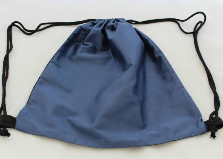 The bag in made from a cotton blend fabric remnant, the drawstring is also cotton.