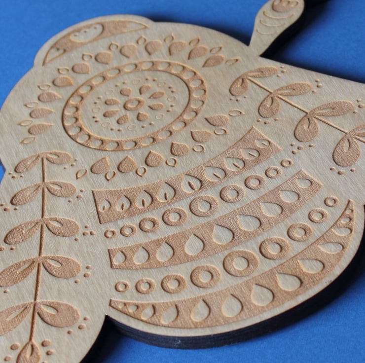 Measuring 230mm in width and 195mm in height, he's a real eye catcher and a great talking point. He hangs from an adhesive hook on the reverse and is cut from 6mm birch ply, giving him a chunky feel while not being too heavy.