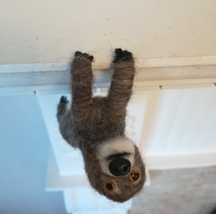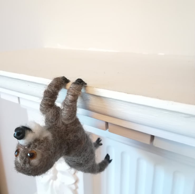 Minature sloth character, all wool needle felted onto a wire armature so can adopt a variety of different poses handmade OOAK approx 5ins 12cms long