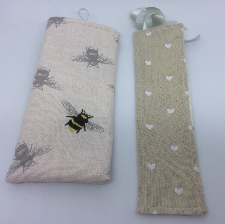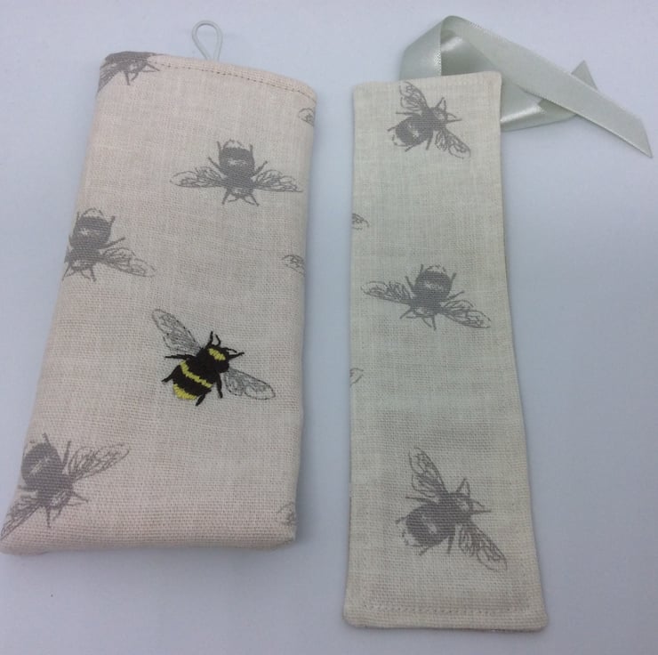 Beautiful bundle, Glasses case and bookmark, bee fabric