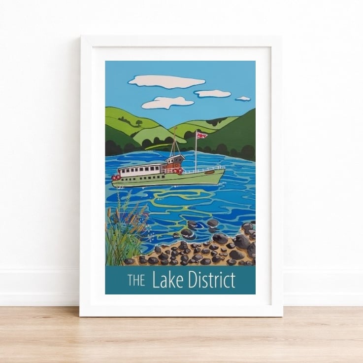 A contemporary travel poster style print of one of the many fabulous views of the Lake District, from my own original acrylic painting. A perfect gift for those who love the Lakes!