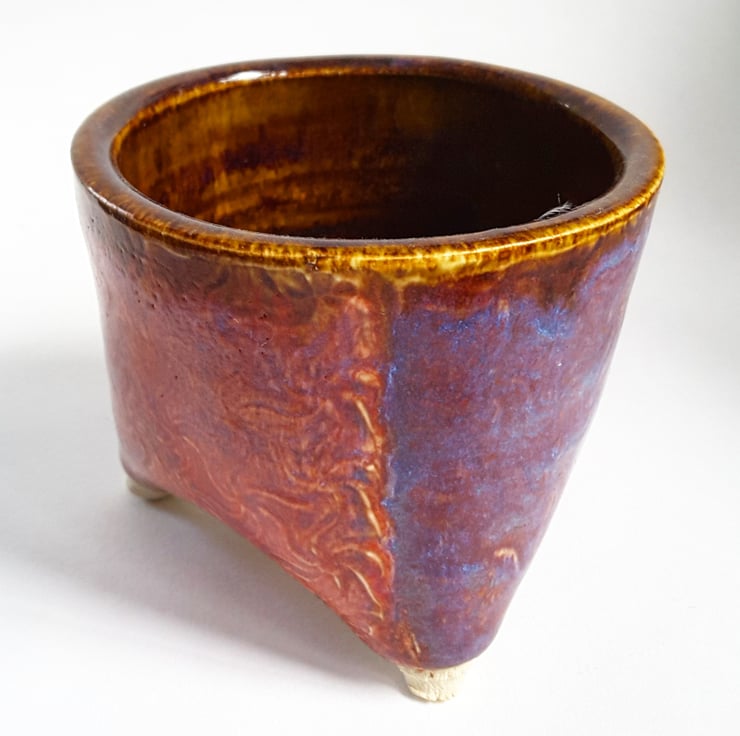 Glazed in a selection on purple, blue and brown glazes