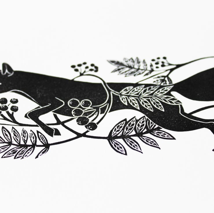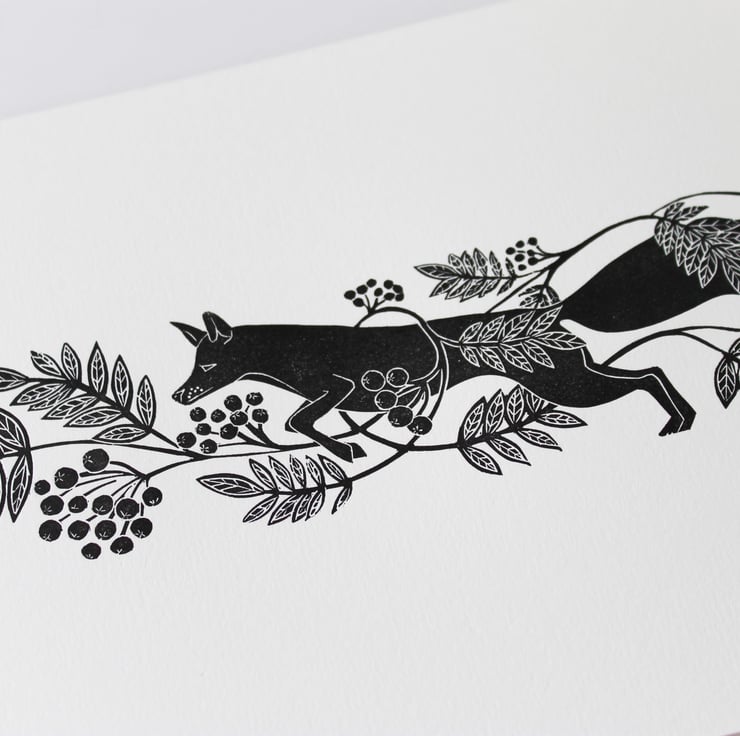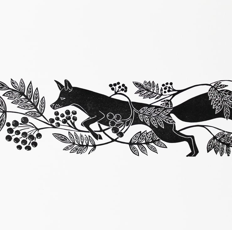 The Rowan Tree is auspicious in folklore and mythology; combined with the Red Fox, this image celebrates Folk Art and the flora and fauna of the British Isles.