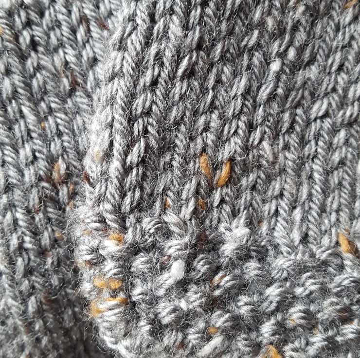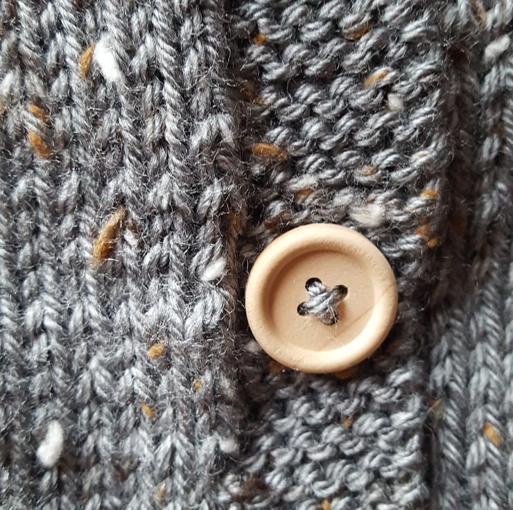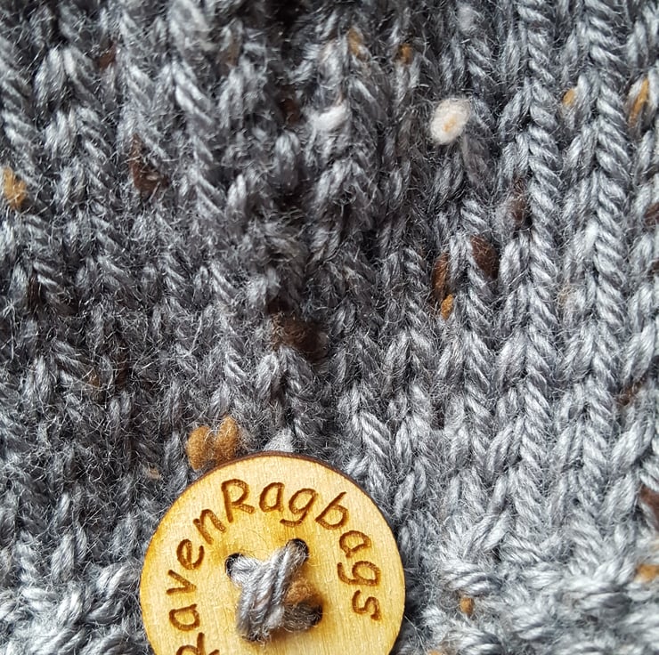 Just right for the chilly days ahead, this super chunky tweed knitted jacket will look super stylish on your little one. Hand knitted to fit chest 22 to 24 inches (approximately 18 months) with back length of 11.5 inches and sleeve length of 8 inches, this gorgeous grey tweed knit fastens with 5 pale wooden buttons and features the unique RavenRagbags handmade button. The snugly hood will keep your baby warm from the elements. The soft yarn is 97% acrylic and 3% viscose and machine washes at 30 degrees centigrade.
