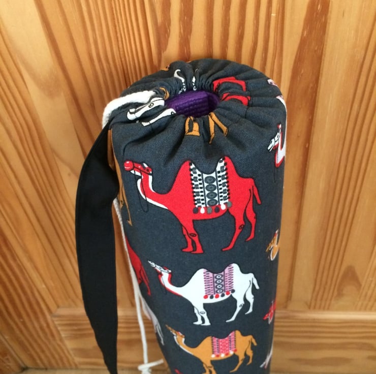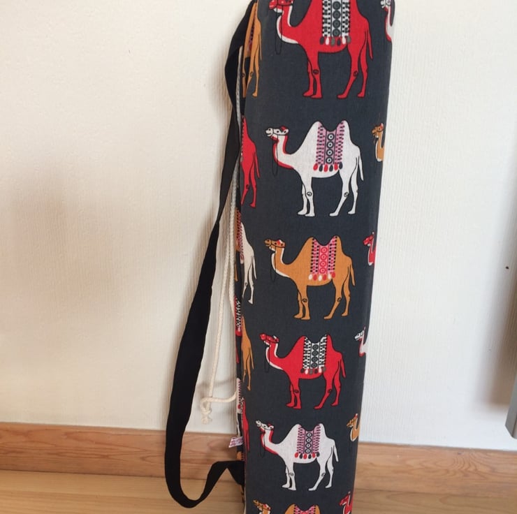 Cotton Canvas Camel Print Yoga mat bag fits a standard 6mm 24" X 68" yoga mat,