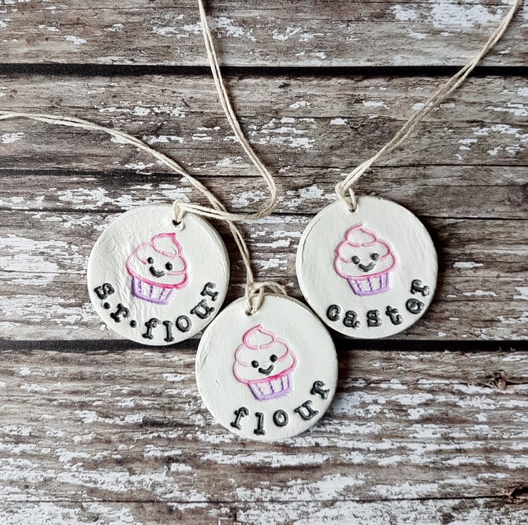 Included are three tags: Flour, SR Flour and Caster Sugar!