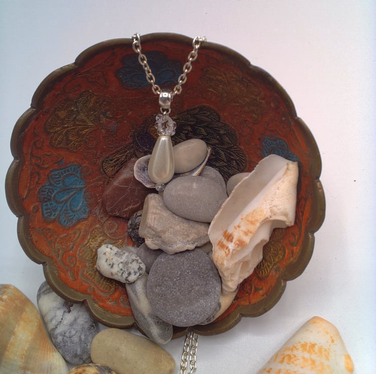 This very classic elegant cream drop pearl pendant suspended on a beaded bail on a silver plated chain would look stunning for any special occasion. It would also make a super gift for a friend or relative for a birthday or anniversary, or a lovely treat for yourself. The pendant is made using a 18 mm x 8 mm white teardrop pearl with clear lined seed beads making the pretty bail. The chain is silver plated and it is secured with a silver plated toggle clasp. The chain is 16 inches (40 cm) in length. The necklace will be dispatched wrapped in tissue paper in an organza bag and delivered to you via Royal Mail first class post.