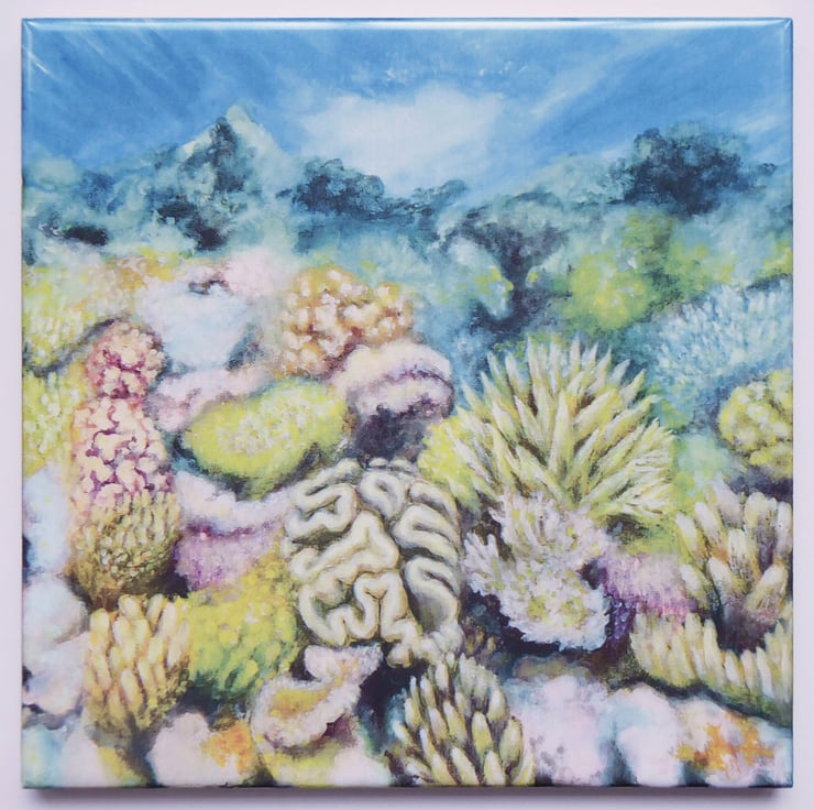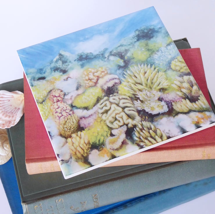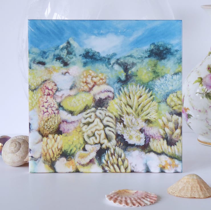 Coral Reef Artwork Ceramic Tile Trivet with Cork Backing