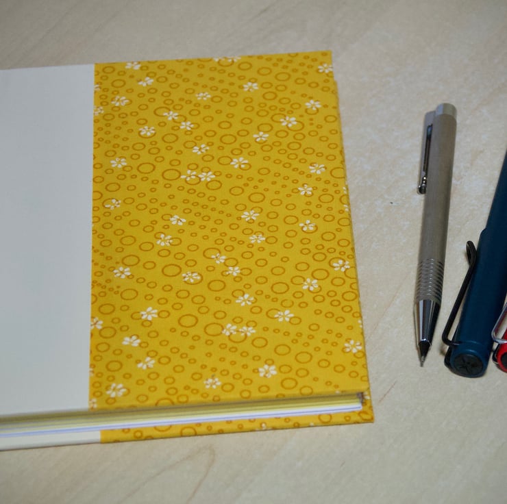 This hand-crafted book is ideal for all sorts of note-taking, drawing and list-making. The fabric cover feels lovely to hold and the alternating yellow and white paper coordinates with the cover. Coloured sections are great for organising your thoughts and doodles.