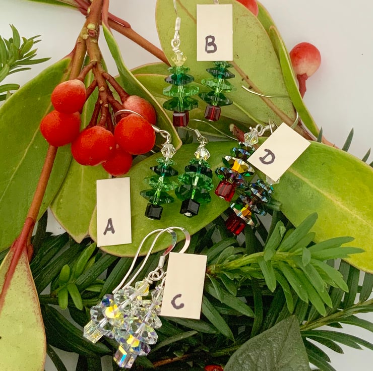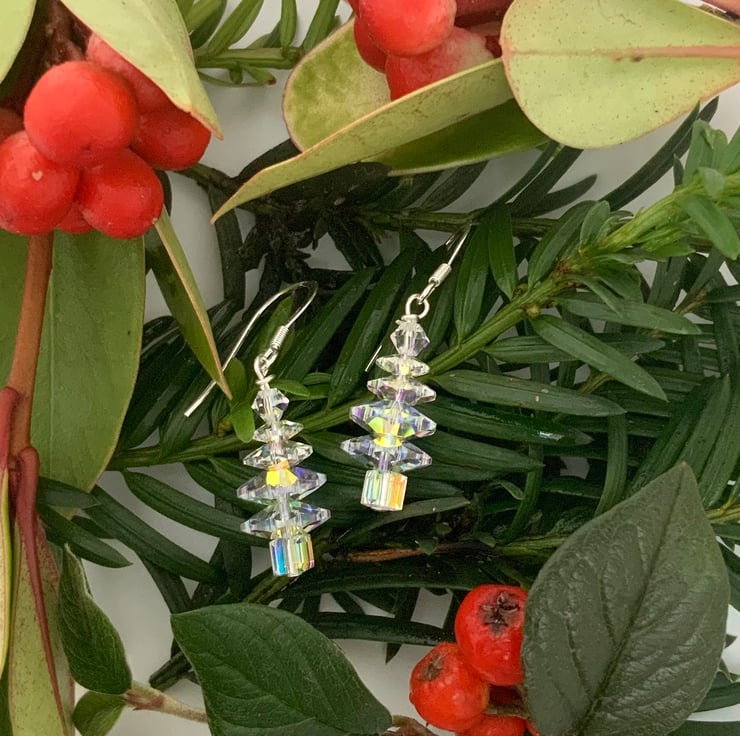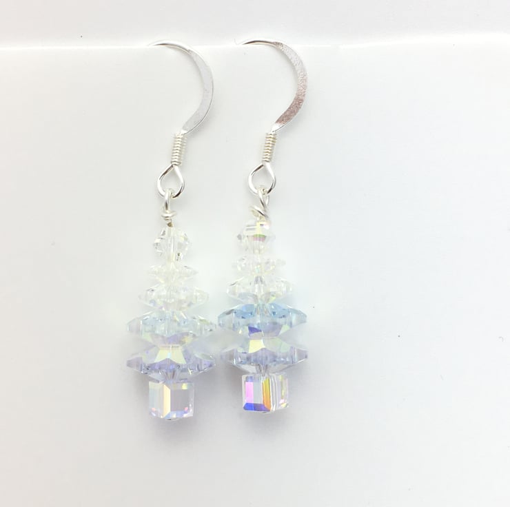 Christmas Earrings. Xmas earrings Silver & Swarovski Elements Crystal tree earrings