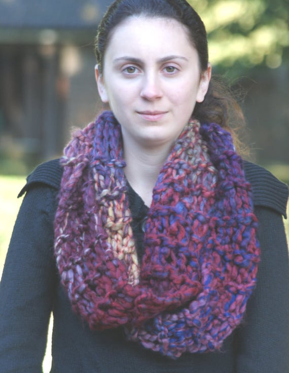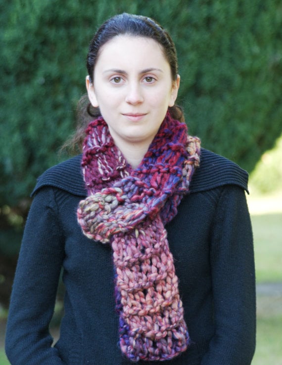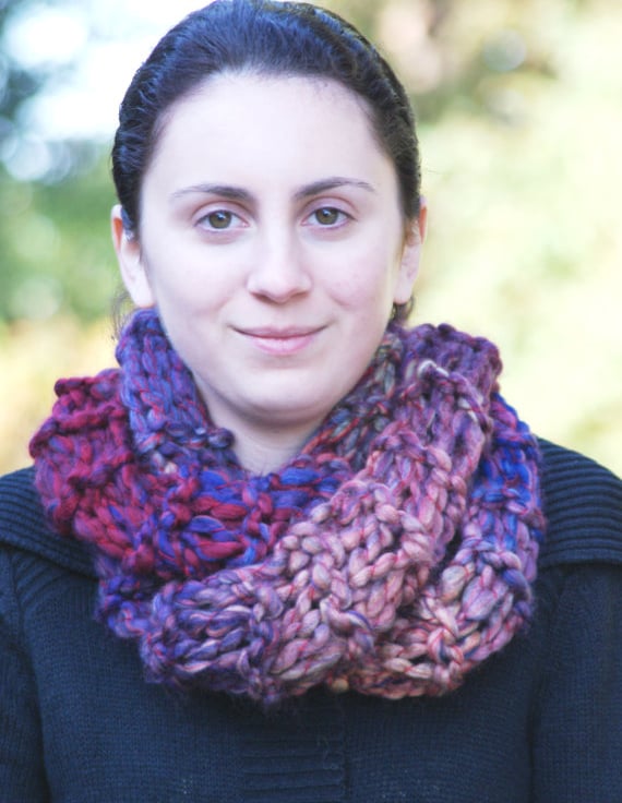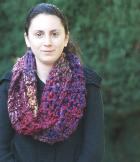 It can be worn as a scarf, or can be looped around 2 times or 3 times to produce a thick chunky cowl