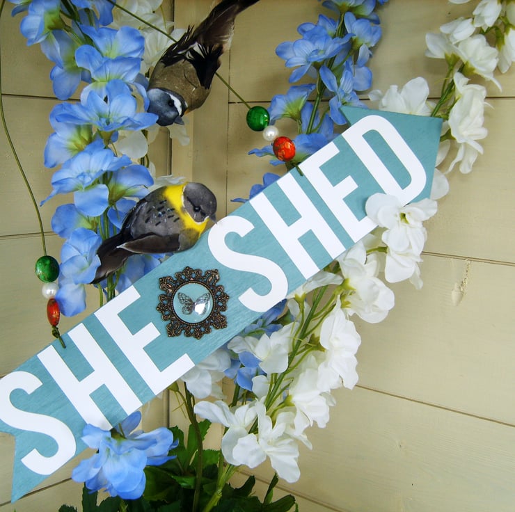 This decorative hanging sign will help to let visitors to your space know it is your 'She Shed', no boys allowed. (Well may be on special occasions, and only if they are well behaved)