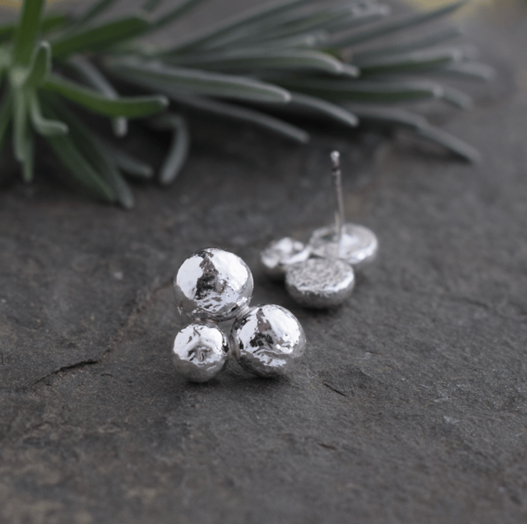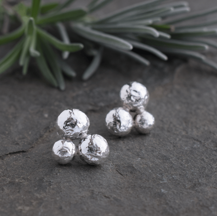 Recycled silver earrings featuring a trio of silver balls clustered together to form these beautifully rustic stud earrings.