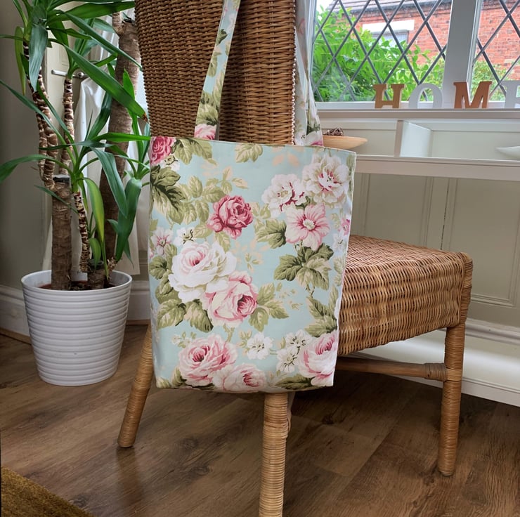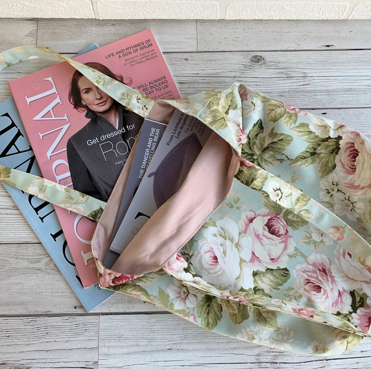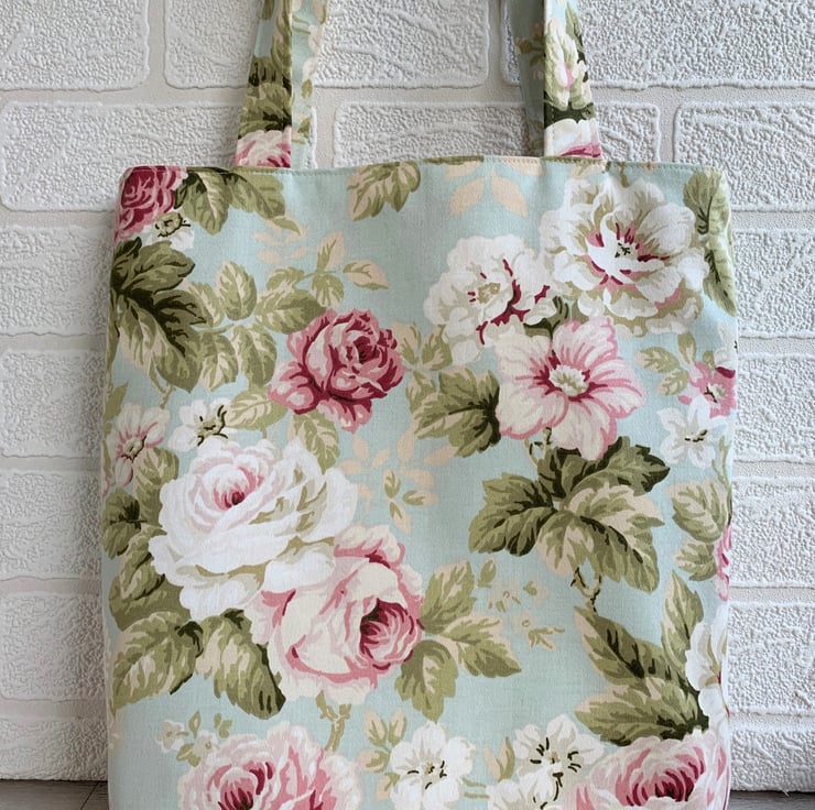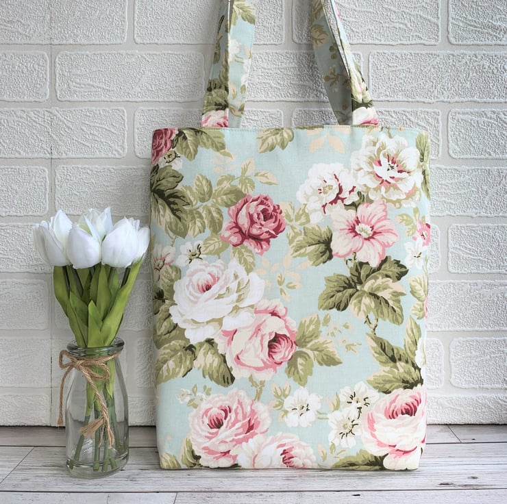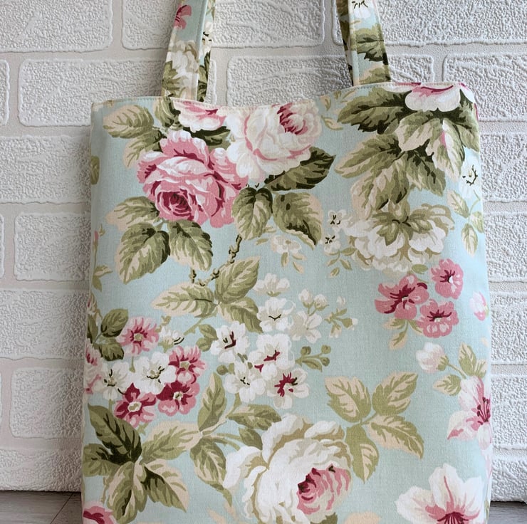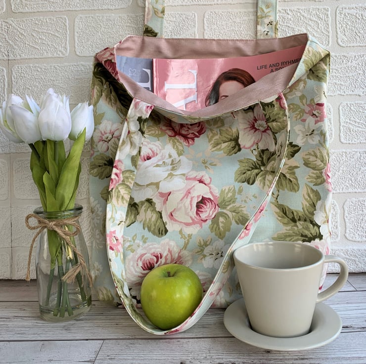 This tote bag is very versatile - perfect for use as a shopping bag but pretty enough to be used as a handbag. It is a lightweight bag and can be easily folded and placed inside a handbag. With its pretty pastel colours and beautiful floral pattern, it would make a lovely gift.